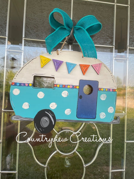 This unfinished door hanger features etching for the door and tire to make painting easier. The pennant banner is 3D and can easily be attached using superglue.