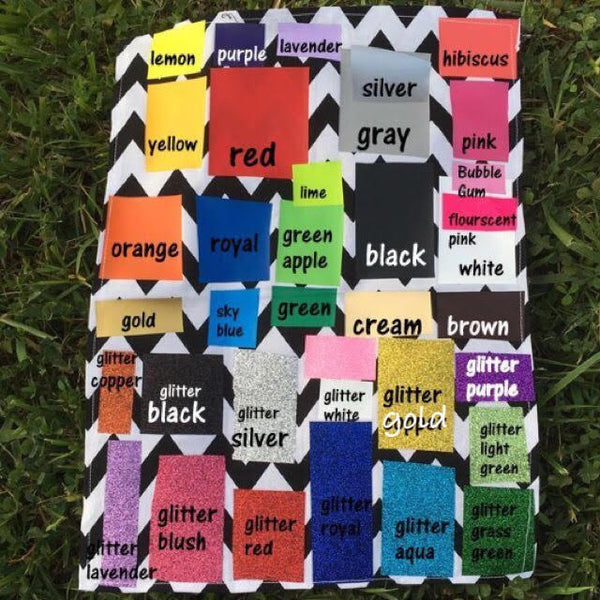 The personalization is done in smooth or glitter red heat transfer vinyl. I use professional grade heat transfer vinyl and secure using an industrial heat press.