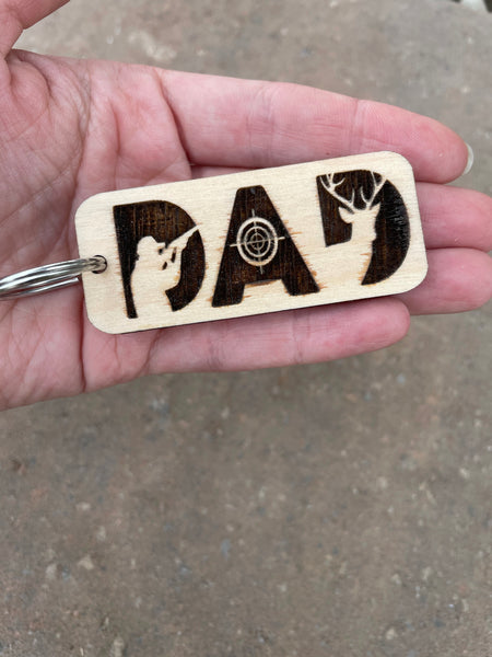 This wooden keychain is roughly 3" in length and is laser engraved. It is sealed to give it a finished look.