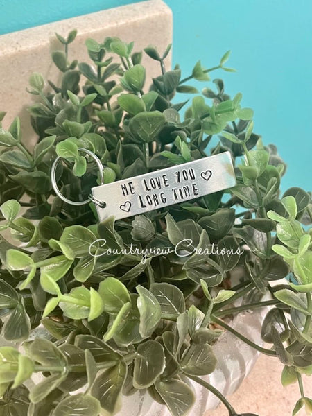 These are unique and one of a kind. I individually stamp each letter which is why placement may vary from keychain to keychain.