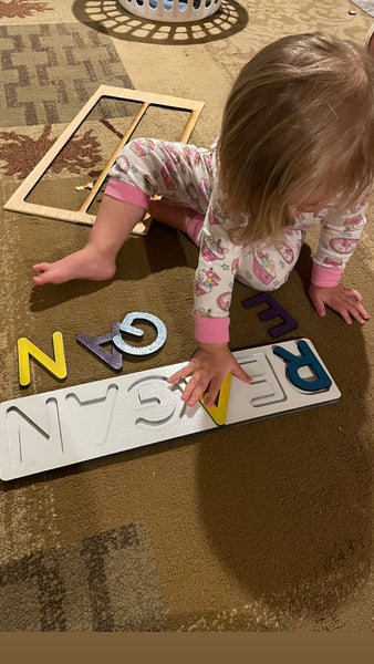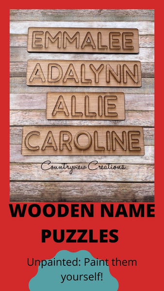 •Natural/un-painted name puzzle. These come unpainted which makes it easy for you to customize to your liking with your own paint colors. Match your child's decor, their favorite colors, etc.