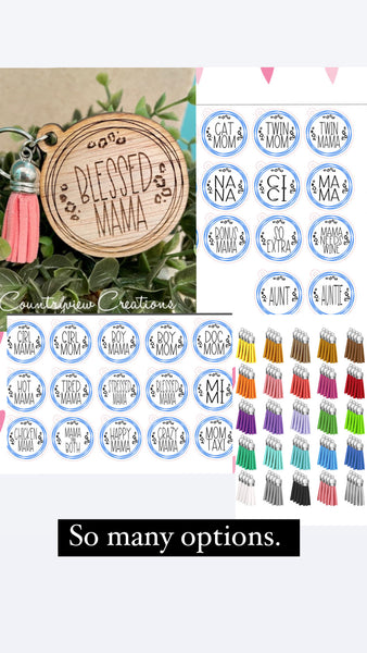 *light weight*choose from several phrases*choose your tassel colorSuch a cute item and perfect for a gift.Use as a keychain, rearview mirror charm, or zipper pull for a purse, diaper bag, or backpack.